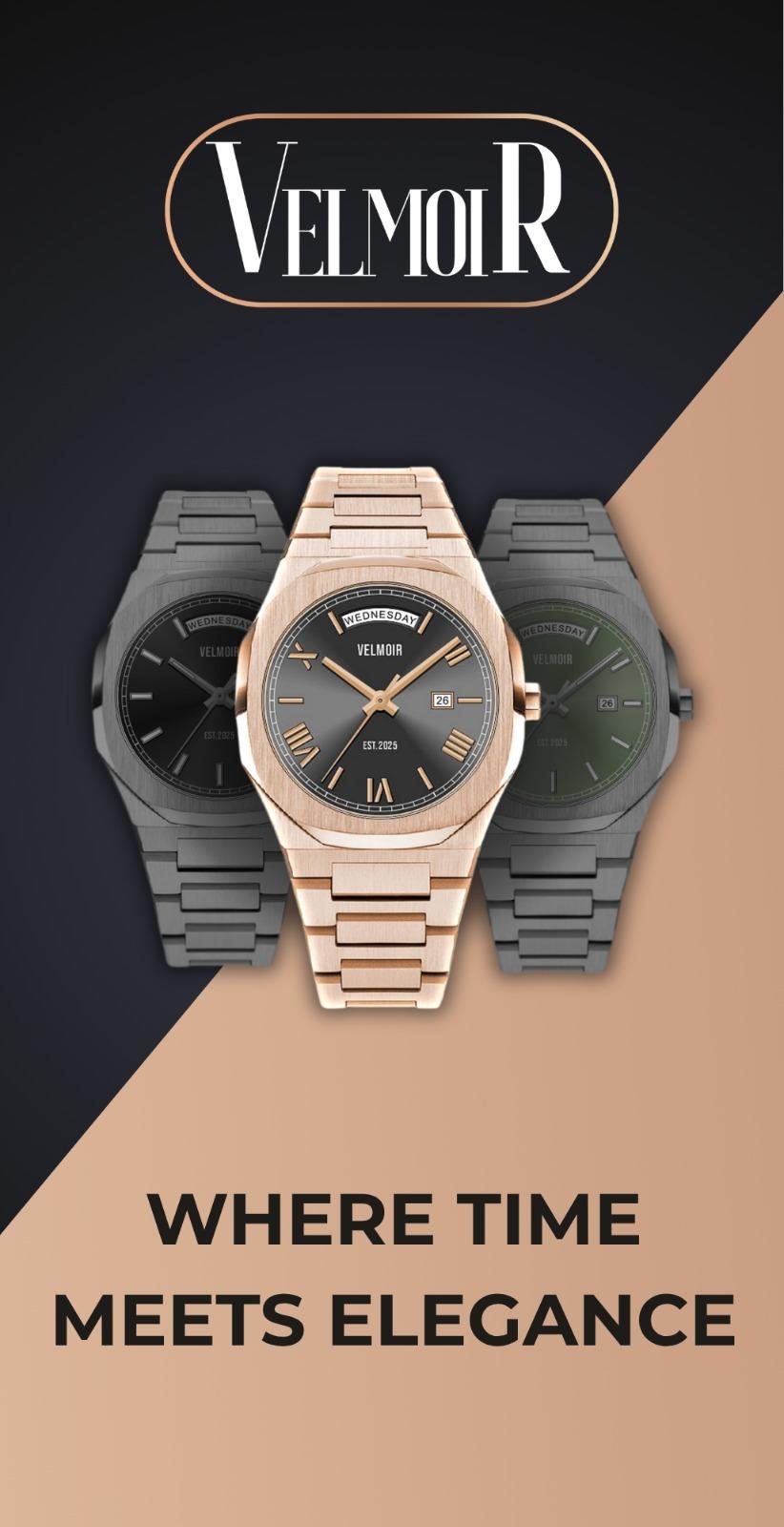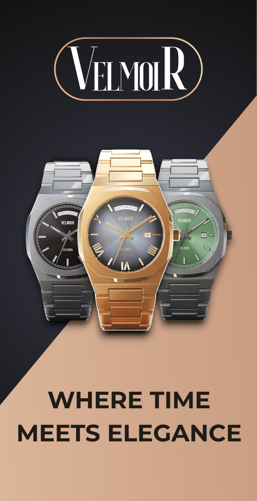 Zwei Gründer, eine Idee: Zeit neu definieren. VELMOIR verbindet präzise Uhrmacherkunst mit moderner Ästhetik für eine Generation, die Business und Stil vereint. Luxus ohne Lautstärke, Eleganz ohne Kompromisse.